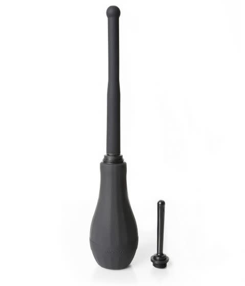 The ergofl director anal douche comes with a medical grade contoured bulb featuring air valve technology. This industry-first reduces messy back-flow, requiring fewer refills. Director comes with an 8" (20 cm) silicone flex-tip nozzle, and a 3" (20 cm) stowaway tip.