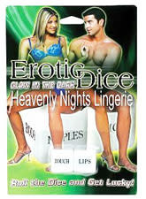 Get the good times rolling and break the ice with these erotic dice. It's easy to score when you have these glow-in-the-dark gems in your pocket. Just turn down the lights and roll the dice! One die tells you what to do the other, which body part. Take turns rolling the dice and explore each other's intimate side. After a few rolls, you're guaranteed to get lucky!