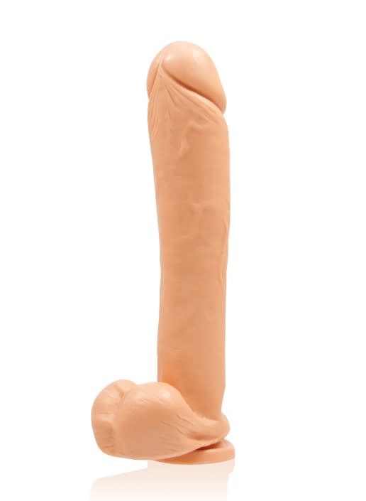 Exxxtreme Dong with Suction Cup Flesh 12 inches. Suction cup base makes solo play a snap. Just put the suction cup down on any flat surface. Use with a partner in a strap on harness. Only use the stretchy style of o-rings. Metal ones may damage the skin. Made with body safe, phthalate free, non-toxic materials PVC. Exxxtreme Dong measures inches long. Cock features realistic head followed by a veined straight shaft and balls. Always clean before and after use. A water based lubricant is recommended. Exxxtreme Dong with Suction Cup 12 inches by 2.48 inches from Si Novelties.