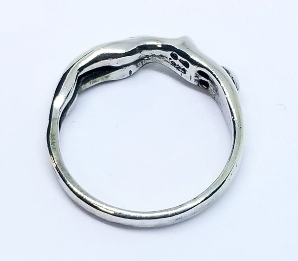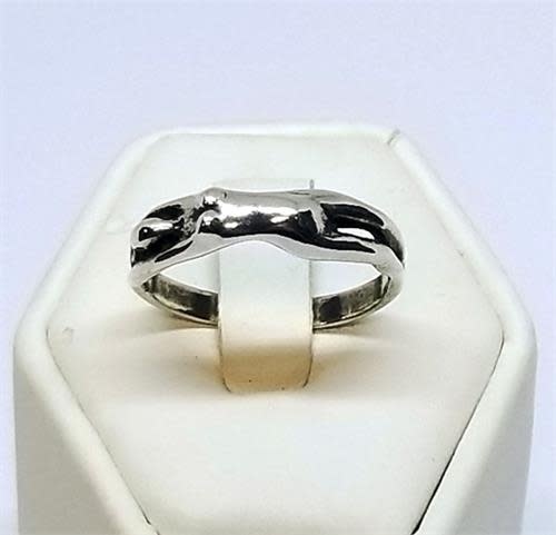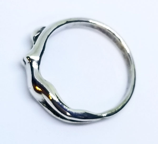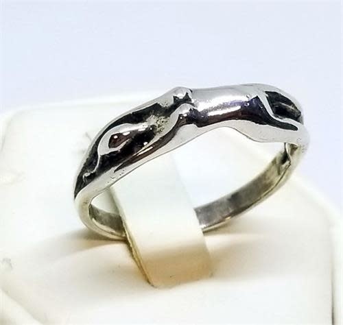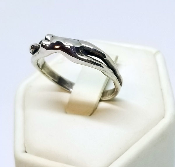 This ring features a female figure curved into the contours of a ring band. You can have her wrapped around your finger with this ring.