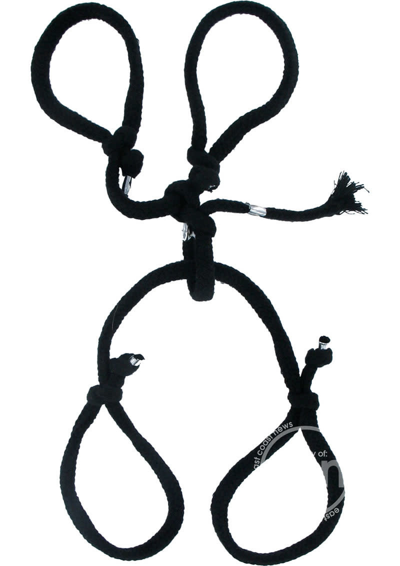 Secure your lover in a classic bondage position with this rope hogtie restraint. Perfect for beginners and strong enough for pros. The knots come tied and pre-assembled - just slide them over your partner's wrists and ankles for that snug fit. FREE Love Mask included.