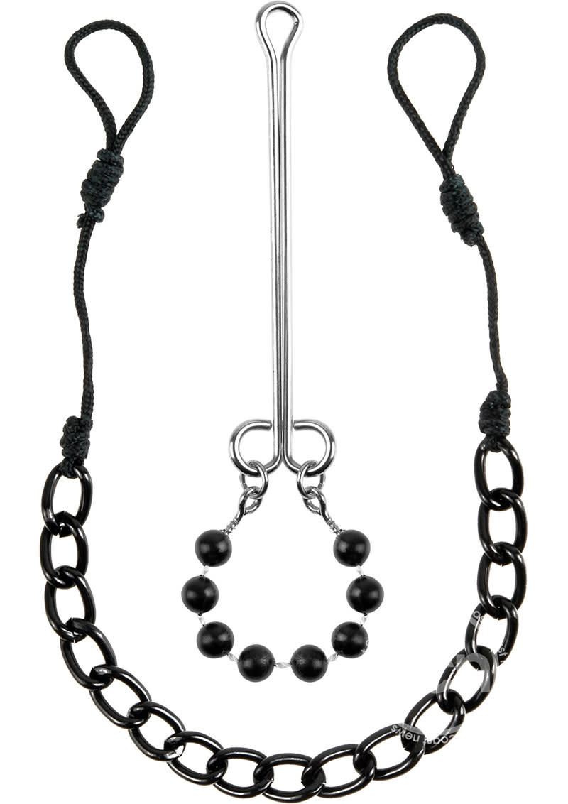 Enjoy explosive stimulation with the sensual clit jewelry. Spread the metal clamp to place your clit through the teardrop to offer easy access to your most precious pleasure spot, while the dangling beads tickle and tease your lips to climax!