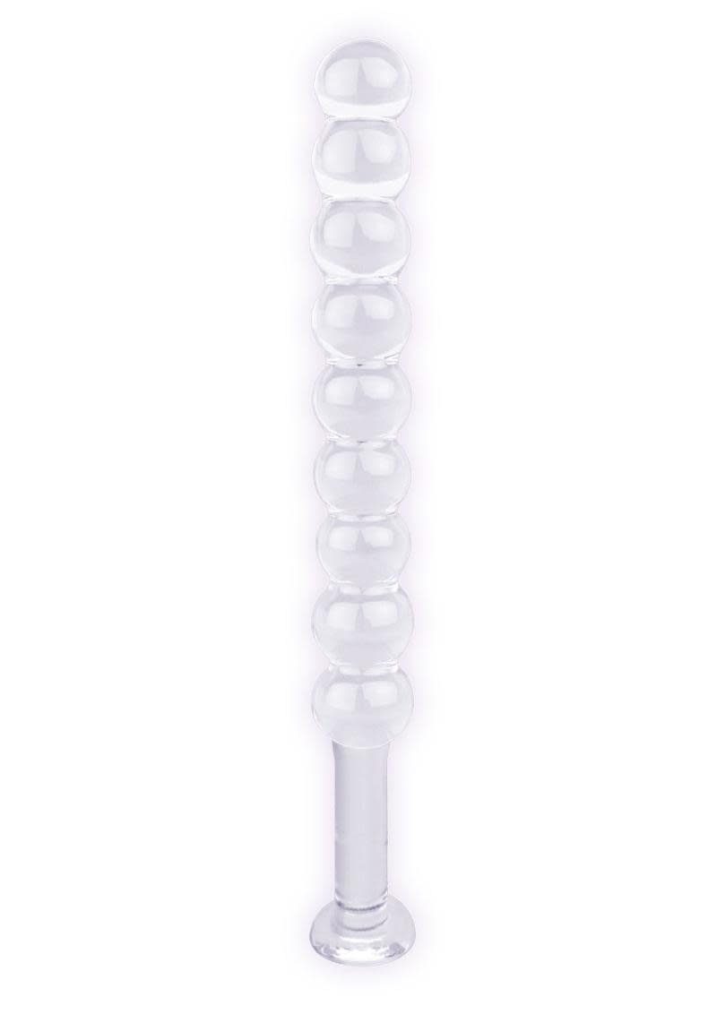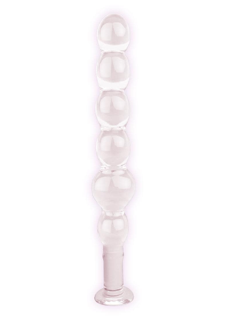 Features: •Brilliant, Hygienic Glass •Round orbs for sexy “bead-like” fun! •Wide Flange for Safe Insertion •Perfectly clear for sexy viewing! •Easy-Clean, Non-Porous Surface