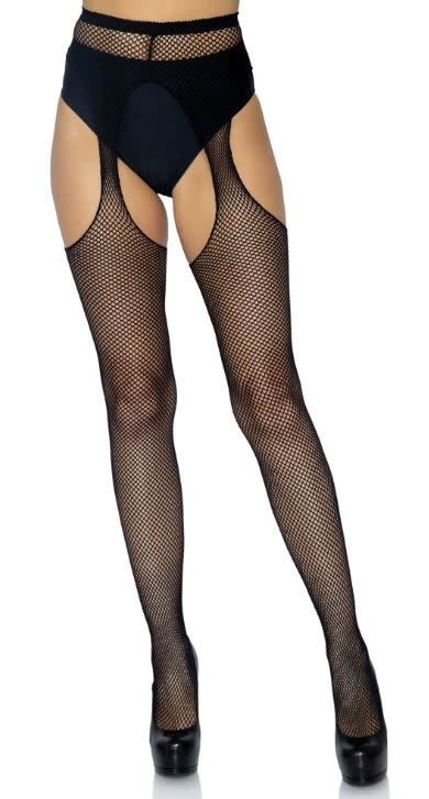 FISHNET SUSPENDER PANTYHOSE BLACK ONE SIZE