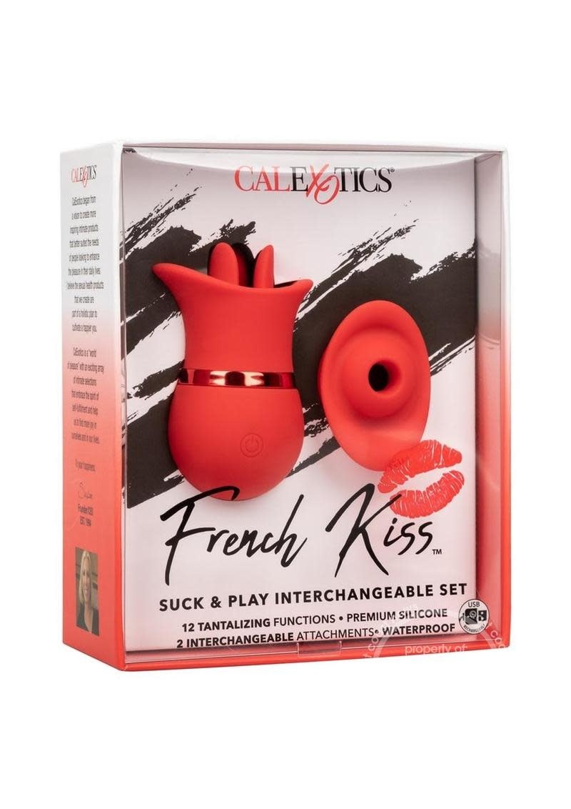Twice the pleasure, oh la la! The sensual French Kiss™ Suck & Play Interchangeable Set knows just what you need with 2 interchangeable attachments with 12 functions of vibration or 12 functions of suction.