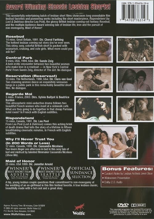 This wonderfully entertaining batch of lesbian short films showcases long unavailable film festival favorites and pioneering works including the short masterpiece, Rispondetemi (by Lost & Delirious director Lea Pool), the glossy British lesbian coming-out fantasy Rosebud, and the multiple Audience-Award winning tale of lesbian life, love and the pursuit of non-monogamy, Maid of Honor!