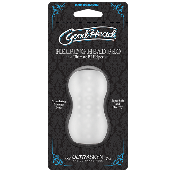 Doc Johnson's new GoodHead Helping Head Pro is a 3” mini stroker specifically designed for handheld use to heighten the sensations and pleasure during fellatio. Soft on the outside, and with stimulating massage beads on the inside, this uniquely-shaped stretchy stroker is made from our clear ultra-realistic ULTRASKYN, for the ultimate feel. Turn GoodHead into great head tonight!