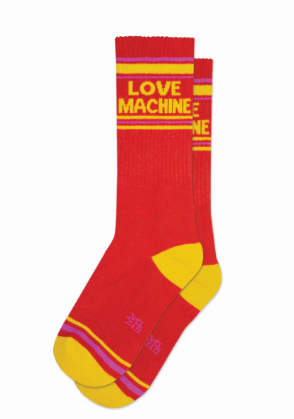 These super-comfy, unisex, one-size-fits-most, Gym Socks are made in the USA of Red Cotton with accents of Libby Berry Nylon, Yellow Nylon.