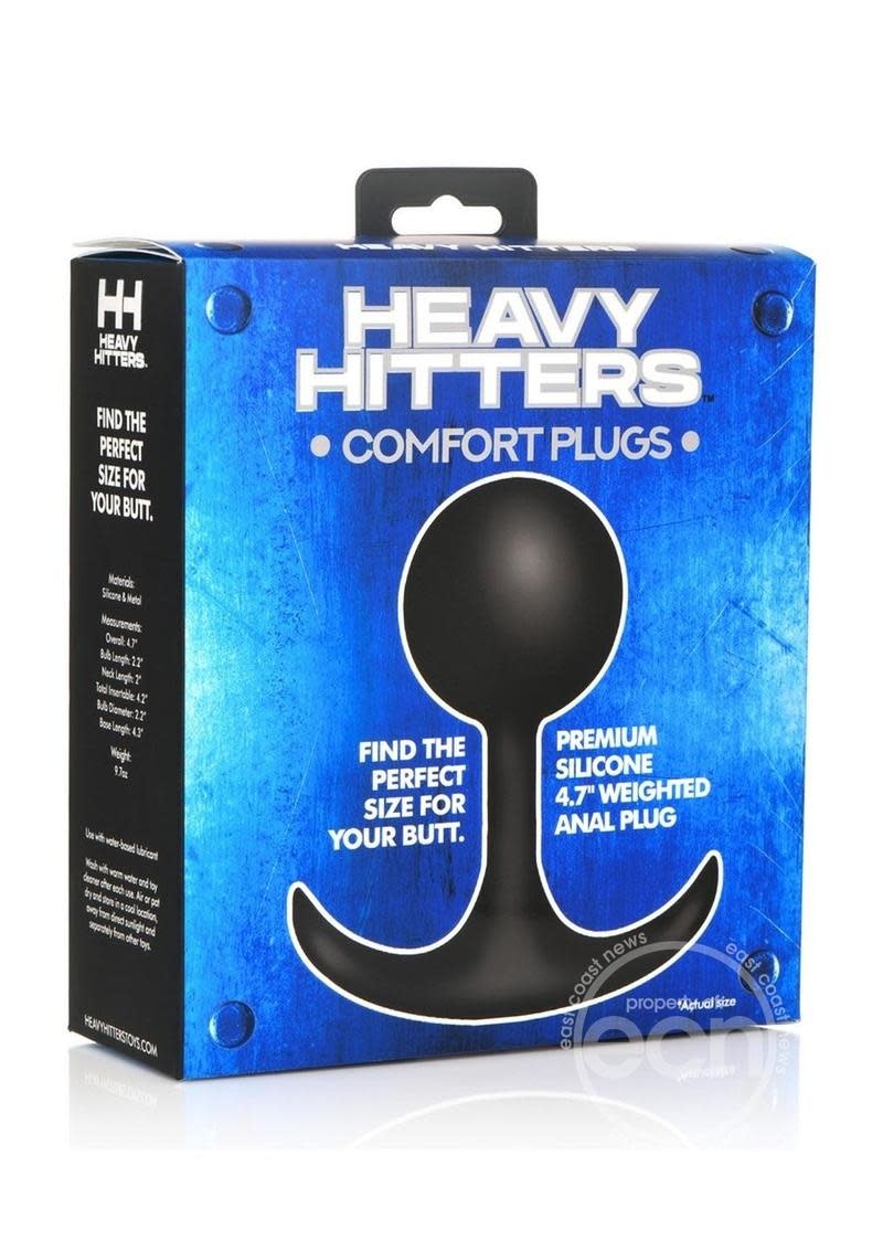 Learn what your ideal size is with these Heavy Hitter Comfort Plugs! The round ball serves as a large bulb for your backdoor to learn to pop inside. Test it out and see what your perfect size is! As you learn to take the big head inside of you, you can also learn to hold it there with the resistance from the solid, metal core! Enjoy the weighted center of the plug as it adds extra pressure inside you as you shift into different positions! Let gravity add to your pleasure as the plug pulls downward and train your sphincter muscles to hold it in place without letting it slip out! The plug is covered in silky soft, premium silicone; enjoy the phthalate-free, body-safe and plush material that is most compatible with water-based lubricants. The slim neck makes wearing it safe and the slim base makes room for your buttcheeks so you can easily and comfortably wear it for extended periods of time. To clean it, push it out and wash it with warm water and mild soap, then spray with a toy cleaner. Store out of direct sunlight and do not let it come into direct contact with other silicone toys or non-anal toys.