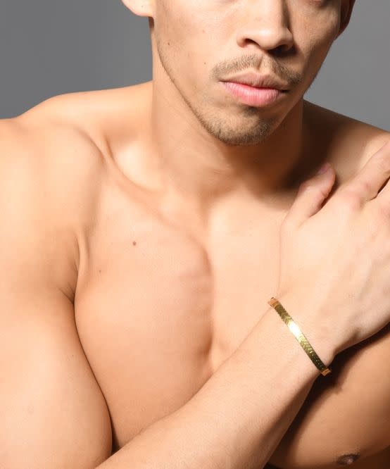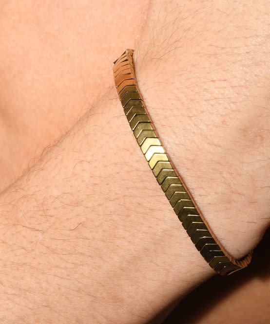 The exquisite Gold Hematite Bracelet might be the most stylish way to personalize a gift for you and him. Each can be layered with additional bracelets, and easy to accessorize with a matching outfit...you're going to look so cute! All bracelets are made to mix & match with other Andrew Christian bracelets and necklaces.
