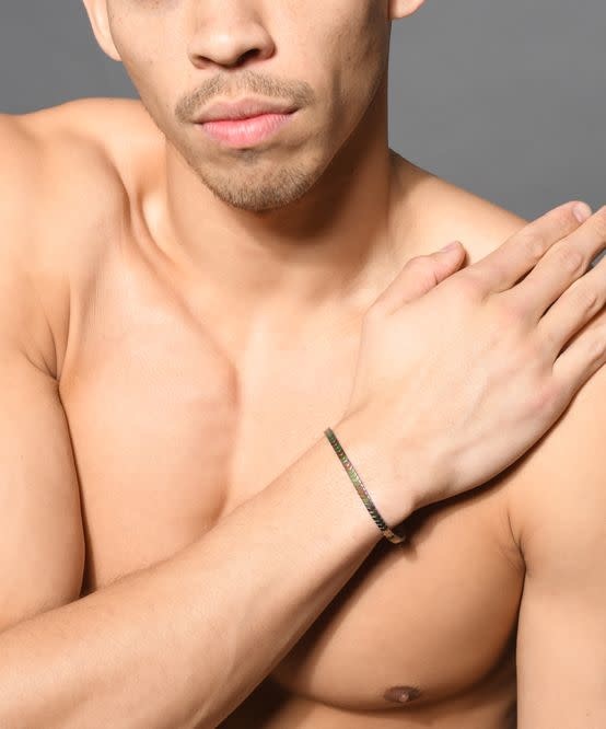 The exquisite Rainbow Hematite Bracelet might be the most stylish way to personalize a gift for you and him. Each can be layered with additional bracelets, and easy to accessorize with a matching outfit...you're going to look so cute! All bracelets are made to mix & match with other Andrew Christian bracelets and necklaces.