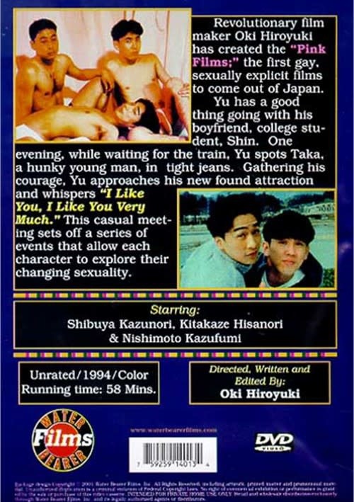 Yu has a good thing going with his boyfriend, college student, Shin. One evening, while waiting for the train, Yu spots Taka, a hunky young man, in tight jeans. Gathering his courage, Yu approaches his new found attraction and whispers "I Like You, I Like You Very Much." This casual meeting sets off a series of events that allow each character to explore their changing sexuality