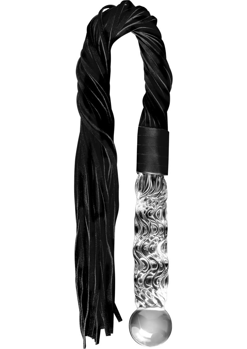 The glass Cat-O-Nine Tails features genuine bull leather tresses that are soft enough for beginner play but heavy enough to deliver a firm whack! The heavy-duty weighted glass handle is hand-blown and doubles as a glass dildo for vaginal or anal play. The beautiful textured swirls provide added stimulation, and the glass handle can be heated or cooled for tempting temperature play.