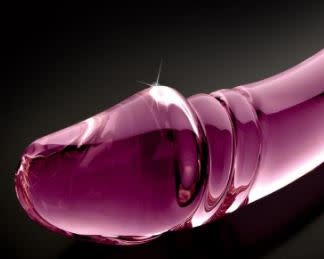 Enjoy double the fun with this elegant double-sided glass massager. Each end features a tapered tip to ease insertion while cleverly curved for explosive G-Spot or P-Spot stimulation. Either end boasts unique textures "a bulbous head and a ribbed swirl" that offer endless possibilities for pleasure!