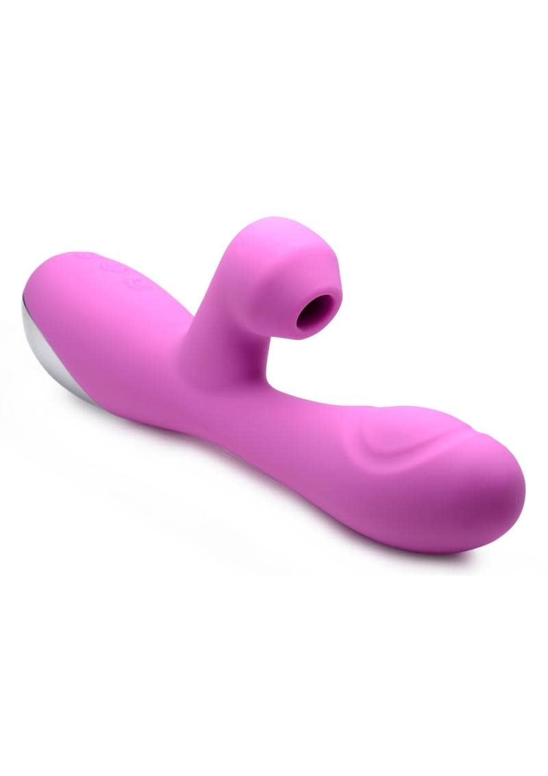Treat yourself to some 5 star treatment with this combination G-spot and clitoral stimulator! Designed to provide you with a blended orgasm through simultaneous pleasure - The clitoral suction arm breathes and sucks on your clitoris while the pulsing shaft rhythmically taps the G-spot. Choose from 7 different suction modes and 3 pulsing functions to send you over the edge! The included turbo mode can be switched on mid-climax to bring your orgasm to new heights - control each function with the easy to use buttons found on the ergonomic handle and change things on the fly for a highly customized experience. The premium silicone build is phthalate free and silky smooth for a satisfying body-safe feel! The 5 Star Rabbit vibe is rechargeable via included USB charging cable, and is IPX3 splash proof for ease of cleaning. Each Shegasm 5 Star Rabbit includes a 5 year warranty!