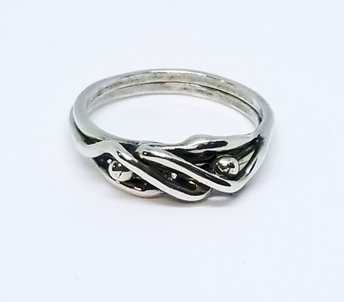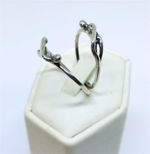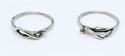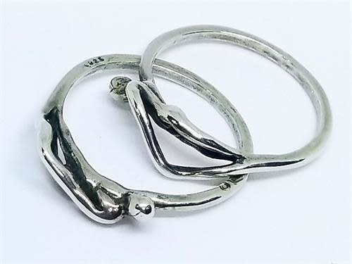 This set of stacking rings features two males interlocked when worn together on a finger.