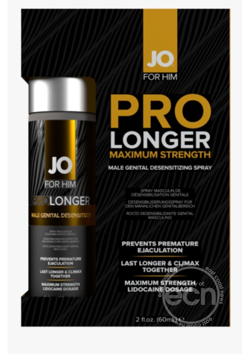 Enjoy intimacy and last longer. JO® PROLONGER SPRAY is a maximum strength topical desensitizing spray specifically designed to slow the onset of ejaculation and enhance stay power. Apply a small amount to the head and shaft of the penis prior to intercourse to maximize pleasure.