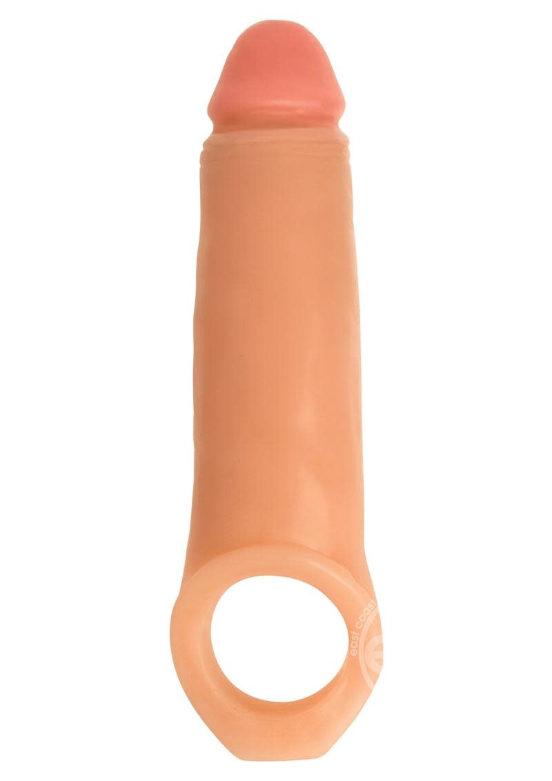 Experience the joy of extra length and girth with this slip-on erection enhancer. Made from enhanced PVC that is both latex-free and phthalate-free, you can be confident that you are using a quality and body-safe toy. A realistic cock heads adds 2 inches of length to your penis while the ball strap keeps the sheath in place and creates a desirable tugging sensation. The snug fit helps to maintain your erection and delay ejaculation.