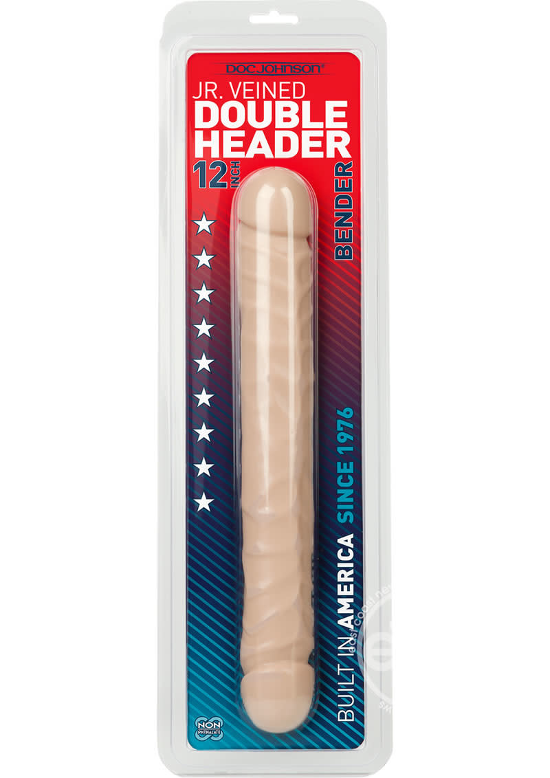 Warmed up for a classic doubleheader? Doc Johnsons 12 inch Jr. Double Header Dong has a phallic head on each end and a veined shaft for stimulating double penetration. The dong is flexible for individuals and just the right length to share with a partner. It is made from phthalate-free body safe material and is Proudly Made in America.