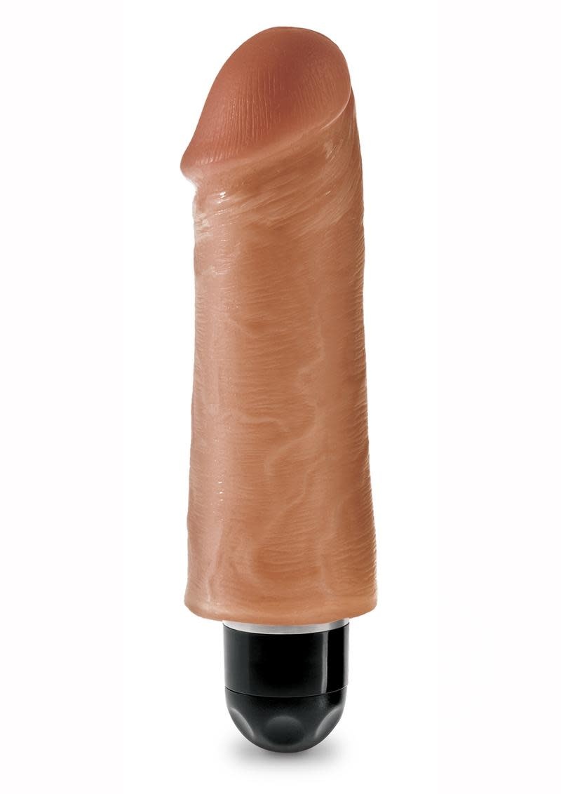 When you're looking for a realistic vibe that's always ready for action, the King Cock Vibrating Stiffy is the perfect choice for maximum satisfaction! This lifelike dildo is made in America and features a powerful multispeed vibrator that delivers mind-blowing thrills. It's phthalate-free, body-safe, and feels even better than the real thing! Try it in the shower or spa and turn bath time into pleasure time. Requires 2 C batteries (not included).