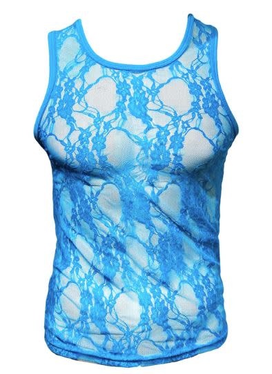 KNOBS SKY BLUE LACE MESH TANK