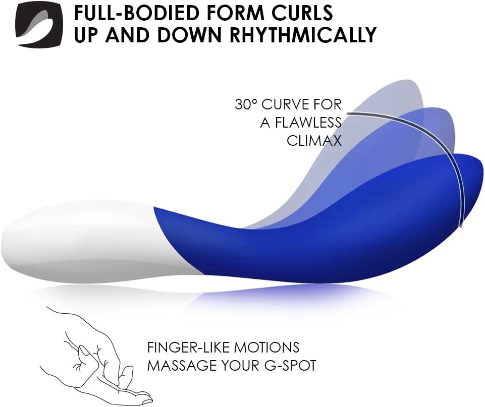 LELO MONA Wave Midnight Blue Vibrator for the orgasm to end all orgasms. Surrender to wave upon wave of intense sensations, with the world's first G-Spot stimulator that truly massages you internally. With its voluptuous form and beckoning come hither finger like motion, MONA Wave not only takes you to the limits of pleasure, but pushes you over the edge to a whole new world. All of this in a sleek, 100% silicone design that is both rechargeable and waterproof, with 10 vibration settings that will leave you gasping for more. Features: contoured design for targeted G-spot massage. Rises and falls like an expert lovers fingers. 10 vibration patterns and with adjustable speeds. 100% waterproof and rechargeable approximately 2 hours use. Ultra smooth, body safe all over Silicone design. 1 year warranty, 10 year quality guarantee. Insertable length: 4.3 inches.