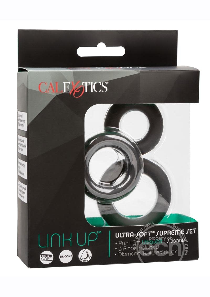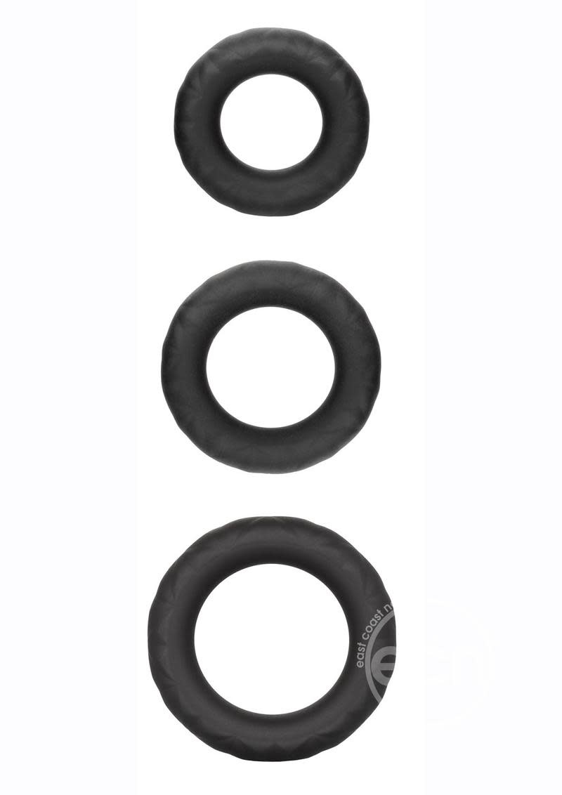 Set of 3 gradually sized premium Ultra-Soft™ Silicone support rings. Comfortable, durable and extremely stretchy. Luxurious body-safe Silicone. Diamond textured designs for sustained pleasure.
