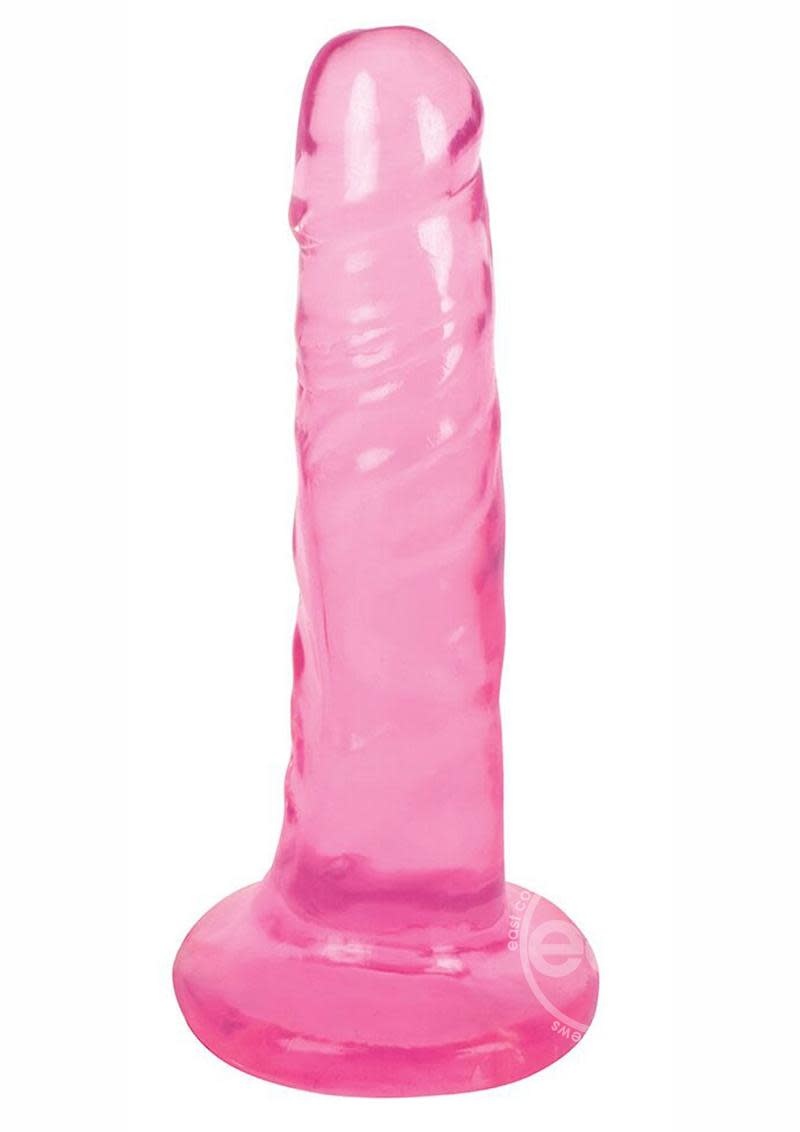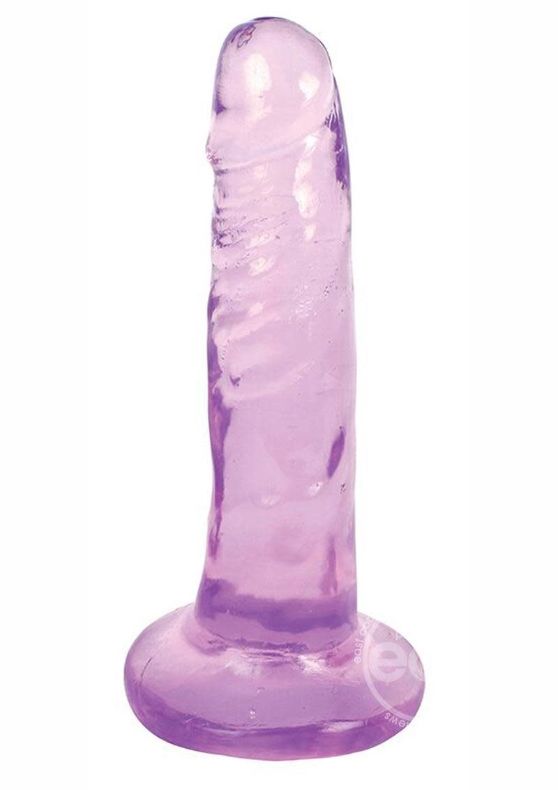 Super slim and sure to please! This crystalline dildo has a lifelike look, crafted out of translucent phthalate-and-latex free PVC for a nice firm ride. The solid suction cup at the base grips any flat surface, with just enough length and girth to fill you up and leave you completely satisfied! The slick and firm material is easy to clean. A quality toy that is the perfect sweet treat made with material from the USA. Curve Toys is known for their ultra-realistic bio-skin formula used to create the best dildos and adult toys in the world. They manufacture their adult replica products in the USA with only body-friendly, phthalate-free, and top-grade materials. Their proprietary blend of bio-skin is mixed in-house, making them a leader in sexual health. All products are inspected for superior functionality so that they represent the value, quality, and innovation from the factory to the bedroom.