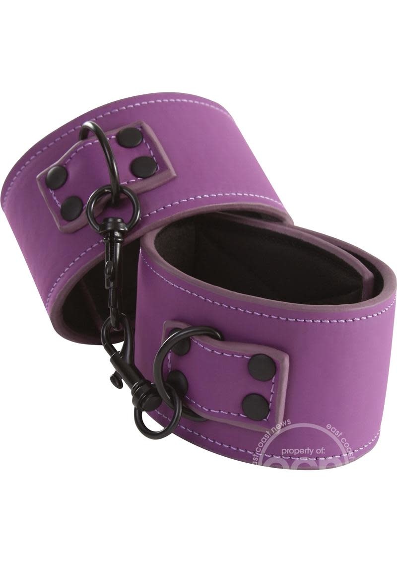 Awaken your desires and delve into the realm of LUST. Meticulously constructed restraints designed to bind your pleasures with an exquisite offering of purple bondage wear. LUST is a collection of wrist and ankle cuffs, ball gag, mask, whip, paddle, collar with chain and hog tie featuring easy to use Velcro closures, neoprene lined for extended wear and black matching hardware. Vinyl construction for ease of maintenance and extreme durability. LUST Bondage - when the mood strikes.