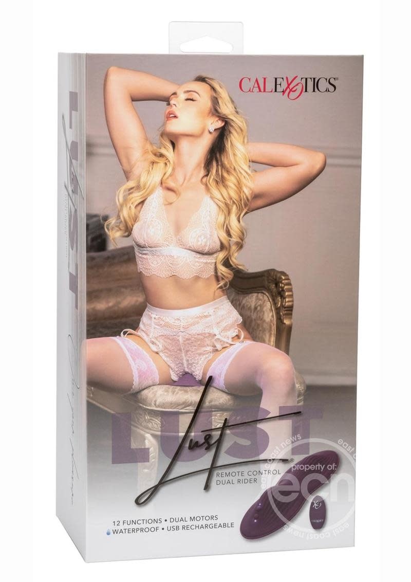 Own your pleasure with the CalExotics Lust® Remote Control Dual Rider, a remote control dual motor massager crafted for self love and exploration. Indulge your senses with 12 functions of intense vibration, 2 powerful motors, and intimately contoured grinding design.