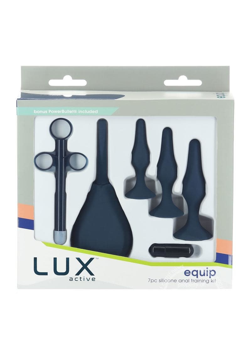 LUX Active’s Equip is the one-stop shop for all your anal endeavors. This luxury set includes advanced products and materials designed to improve anal play, so you won’t have to think twice. The set consists of 3 seamless silicone anal plugs of varying gradual sizes, a silicone anal douche, a lubricant injector, as well as an included large athletic travel bag and a bonus single-speed PowerBullet.