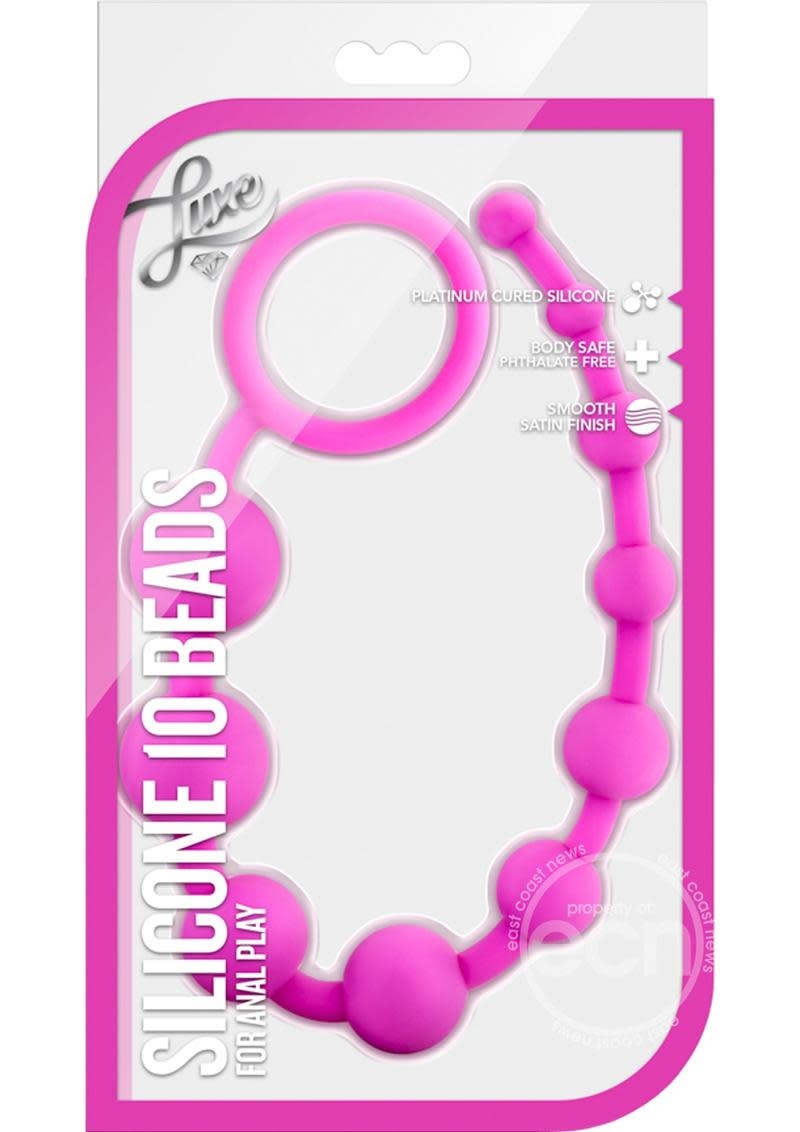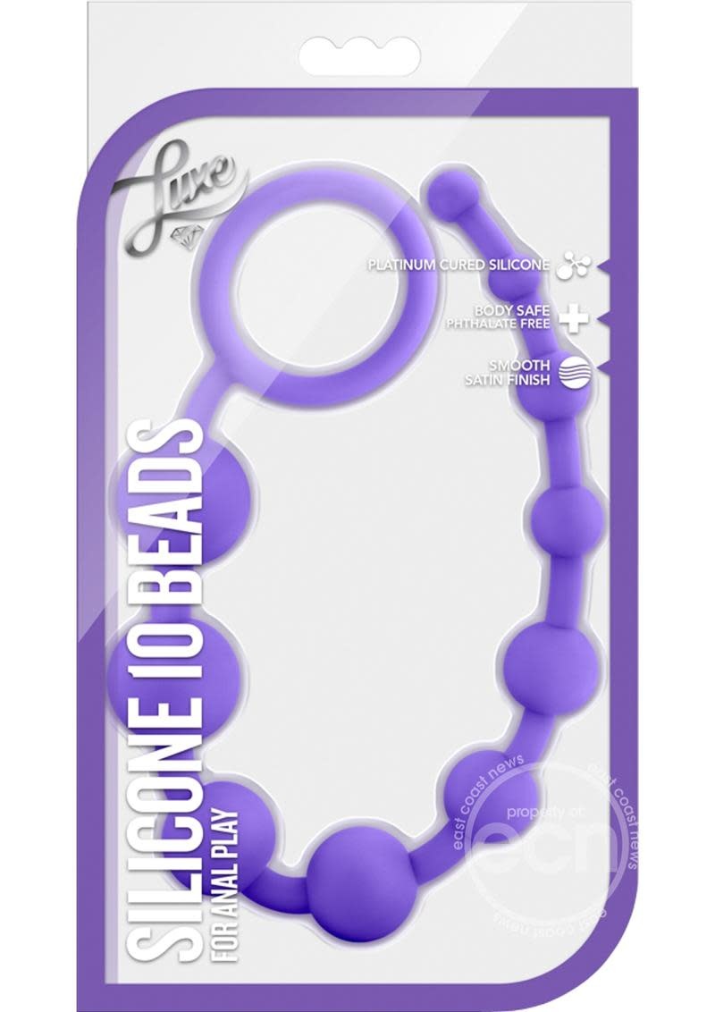 The Luxe Silicone 10 beads let you safely explore anal play. The Silicone 10 beads are exactly as they sound: 10 silicone beads graduating in size made of smooth satin silicone. The size and the loop at the end ensure easy insertion and retrieval. Our Silicone 10 Beads come in three lush colors: pink, purple and indigo. Perfect for the beginning of anal exploration, these would make an excellent gift to a lover to send a subtle hint. Made of fragrance free platinum cured silicone: this toy is body safe and easy to clean! Just wash with warm soap and water, or your favorite toy cleaner, before and after every use. Pat dry with a soft towel before storing.