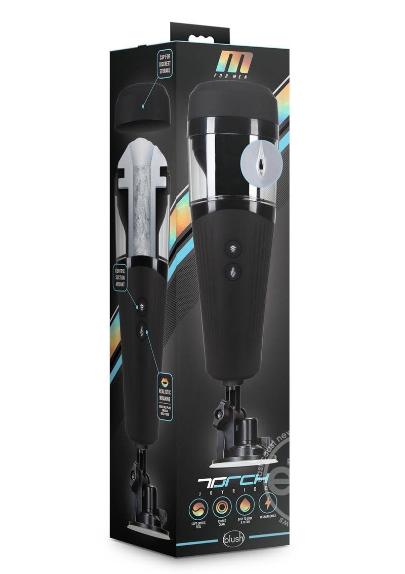 Premium thrusting technology is yours in Torch Joyride! With an adjustable suction cup base and easy-press controls, Joyride is fun and easy. Torch Joyride also includes a realistic-moaning function: connect your headphones to hear the sounds of pleasure! (Volume is not adjustable) Rechargeable and with 7 different thrusting modes, the Torch Joyride is ready to deliver pleasure. It also comes with headphones and a USB recharging cable. The discreet canister means no one needs to know what you have hidden inside. Sleeve made with body safe TPE and contains no Phthalates, Paraffins, or Latex.