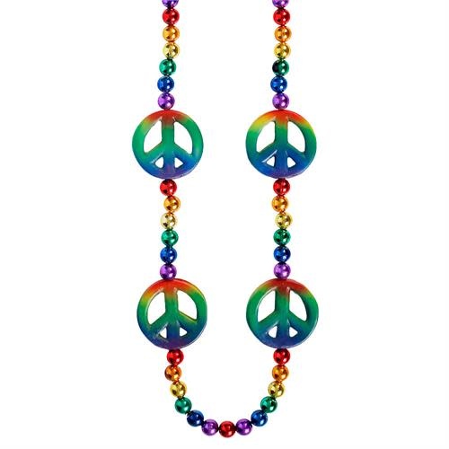 12mm rainbow color beads with 4 large rainbow peace signs. 42".