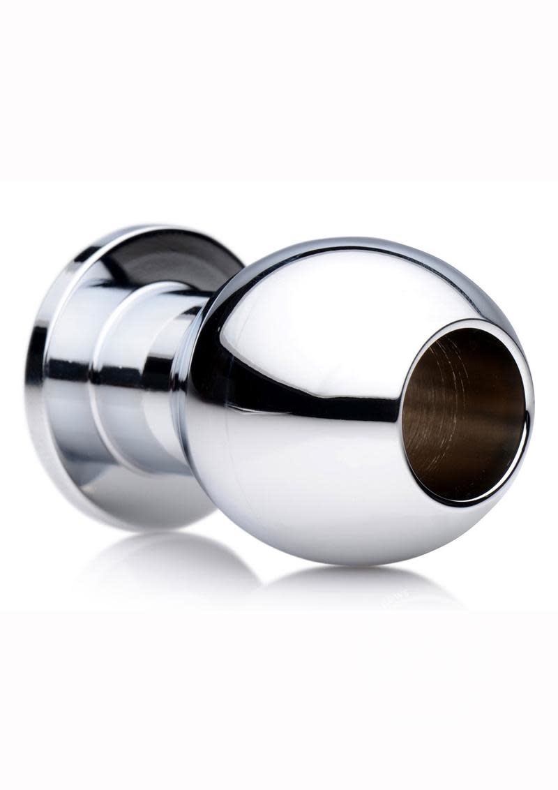 Look deep inside with this hollow anal plug made of metal! Use it with a partner to give them a glimpse into you most intimate regions, or see what can fit into the center tunnel. The nickel-free aluminum alloy facilitates a smooth insertion as this anal dilator spreads you open. Because it is non-porous, it can be used with any type of lubricant and sanitizes thoroughly with warm water and mild soap or toy cleaner.