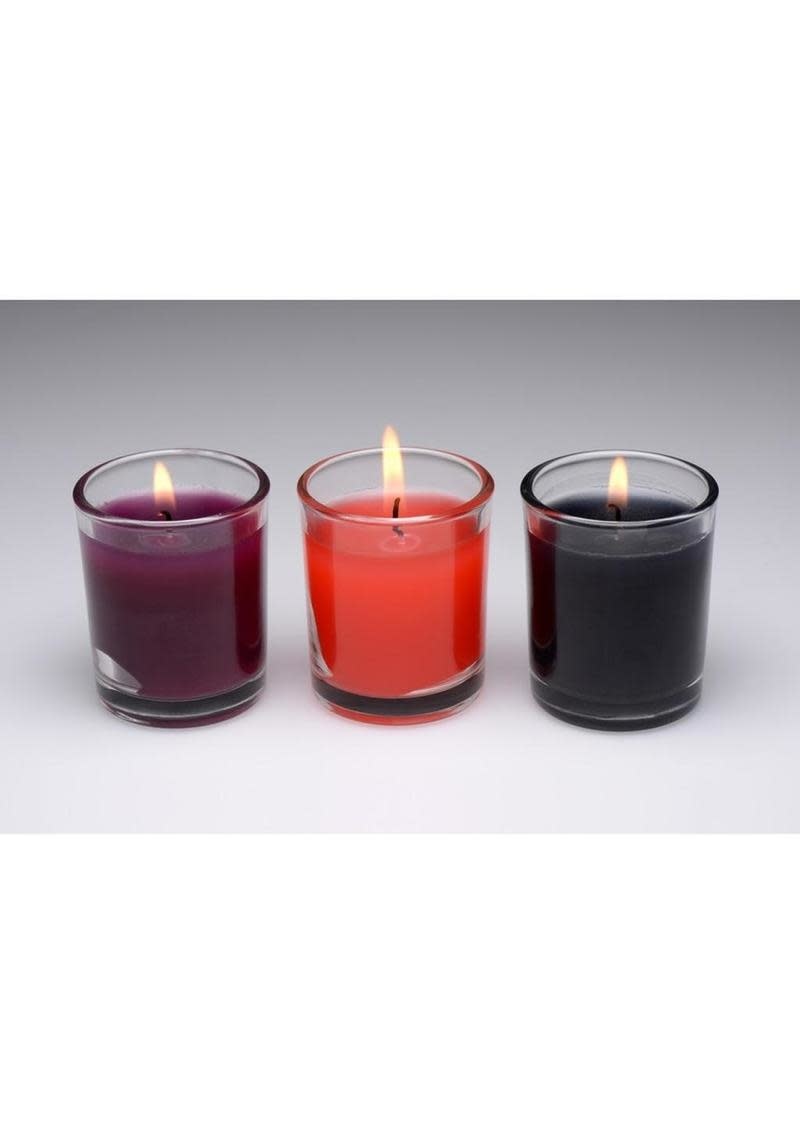 Make them writhe and wriggle as you drop hot beads of wax on their body! Experiment in some high intensity sensation play with a set of candles designed for BDSM - this trio of candles is made with a wax formula formulated for easy melting and dripping. Perfect for all BDSM skill levels to experiment and explore the world of candle play!