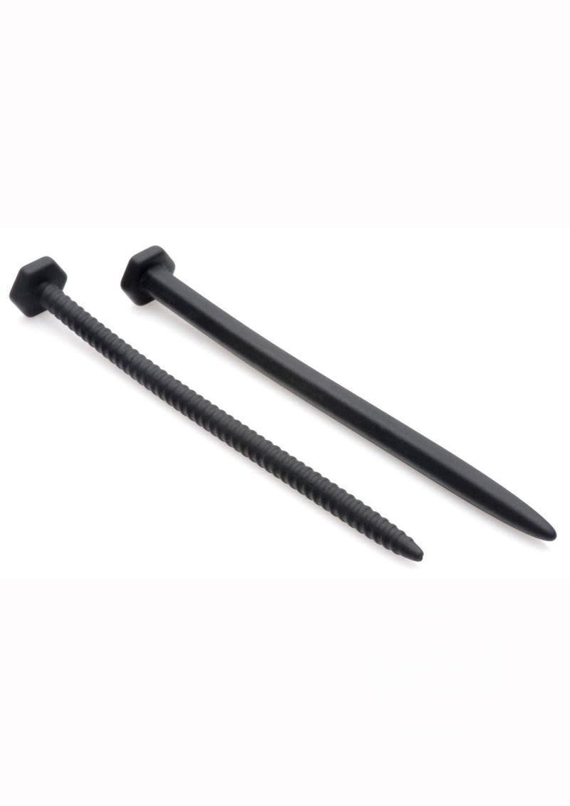 Two irresistible shapes for your penetrative pleasure! Both sounds are shaped like heavy-duty hardware, tempting you with a smooth, hexagonal nail and a spiral-textured screw. The flexibility and silkiness of the material ensures a comfortable insertion as it conforms to your inner curves. Fulfill your most hardcore fantasies with this dastardly duo! Made of premium silicone, these sounding rods are hypoallergenic and easy to clean with mild soap and warm water. Do not use with silicone lubricant.