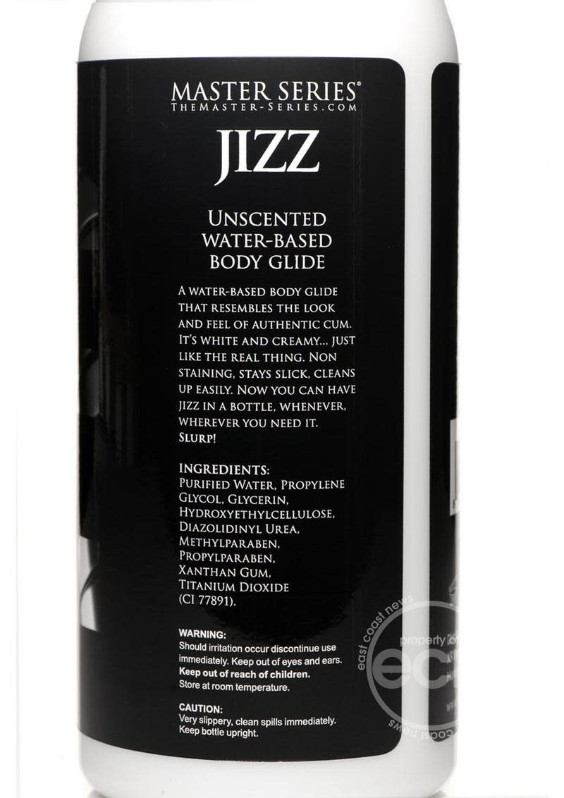 Love the texture and look of cum? Play with our Jizz Body Glide and enjoy using it in sensual play! The creamy white texture is made from a water-based mix and it is unscented so you can enjoy the look and feel without any lingering scents! It is super slippery, so you can slip and slide over each other as you massage each other's bodies. As a bonus, even if it spills it is non-staining! It stays slick, but because of the water-base it cleans up easily with soap and water. Ingredients included are generally body safe but do include glycerin, so it is not recommended for internal use. Keep away from children and keep at room temperature in an upright position.