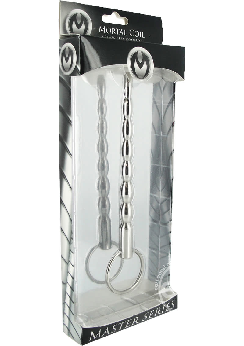 The Mortal Coil sound Master Series is made of brushed stainless steel and is designed to increase pleasure. Progressive swells allow for added stimulation. Long and smooth, this sound is perfectly suitable for targeted sensations. Take it to the next level with a little temperature play: the Mortal Coil can be warmed with warm water or cooled in the refrigerator. A thru-hole runs through the shaft and a ring pull is attached to the end for easy manipulation and retrieval.