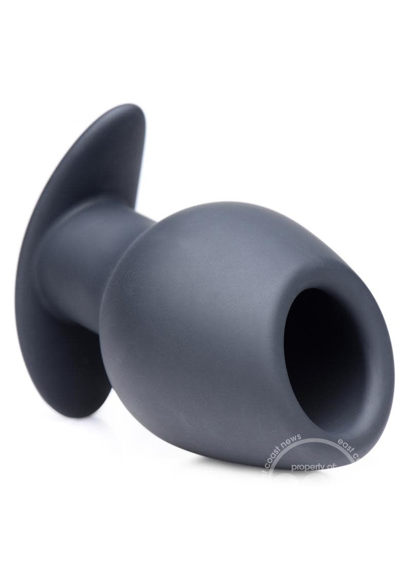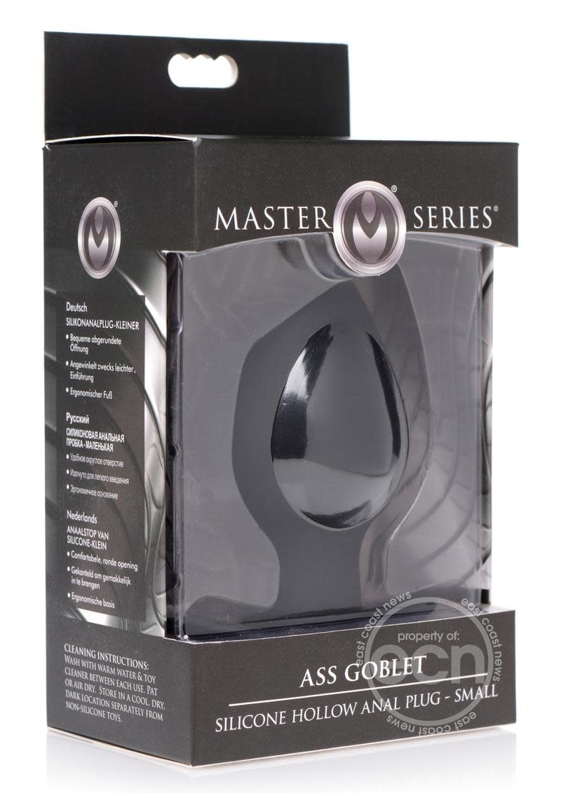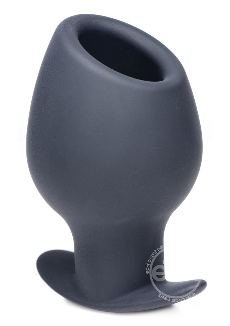 Quench your anal cravings with the Ass Goblet! This smaller version of the plug is hollow, but angled for easy insertion to set it apart from similar anal accessories. The comfortable, rounded opening assists with penetration, allowing the wide bulb to squeeze into you. Once inside, the hollow core leaves you open to a peek or a poke! The ergonomic base sits perfectly between your cheeks so that you can wear it for hours! Made of premium silicone, this butt plug is non-porous, phthalate-free, and easy to clean with mild soap or toy cleaner. Avoid use with silicone lubricants.