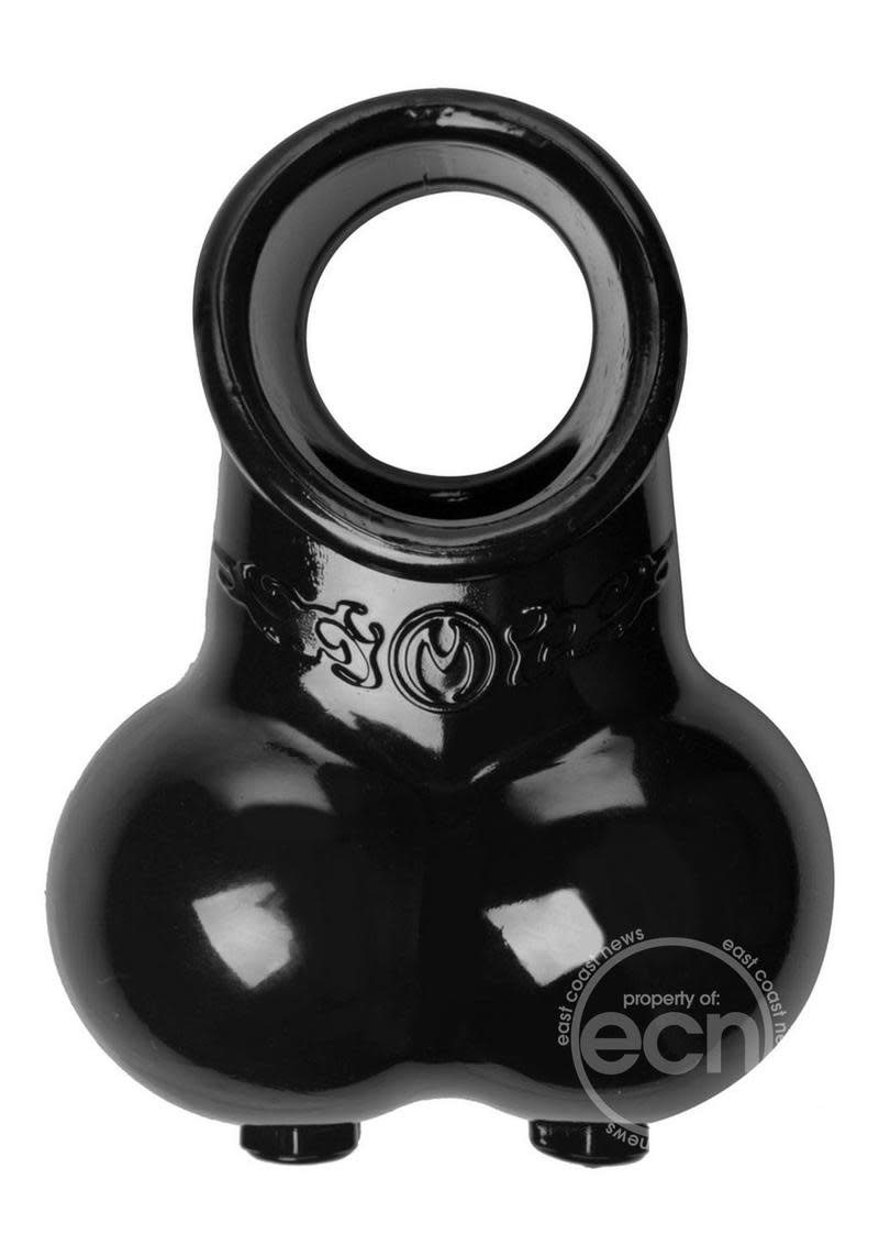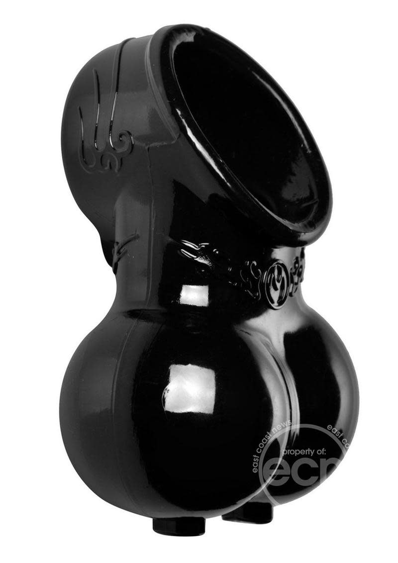 This devious scrotum sack creates a mild pressure sensation as well as a confining caress against the skin of the wearer. Simply fit the penis through the top ring and slip the bottom pouch over the scrotum. The Chamber gives just enough to fit over the wearer, while remaining firm enough to keep things interesting. The top ring helps retain blood flow for an enhanced erection. Is it reward? It is your domain, you decide.