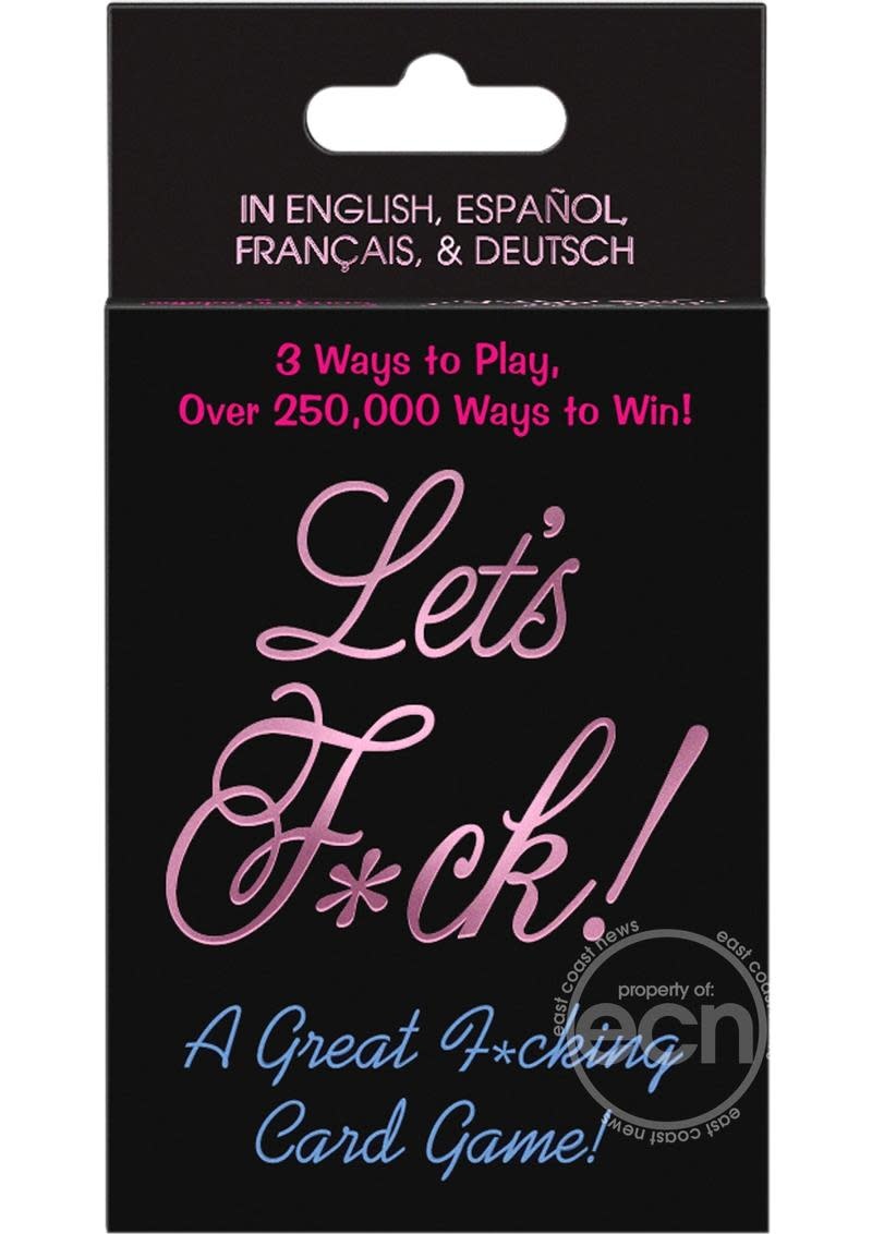 Let's F*ck Card Game. The quick and easy game that gets you laid! Includes 48 Let's F... Cards, 4 Let's F*ck Wild Cards, and rules for 3 games: F*ck Fortunes, Match & F*ck, and Personal F*ck Questions. Adult card game.