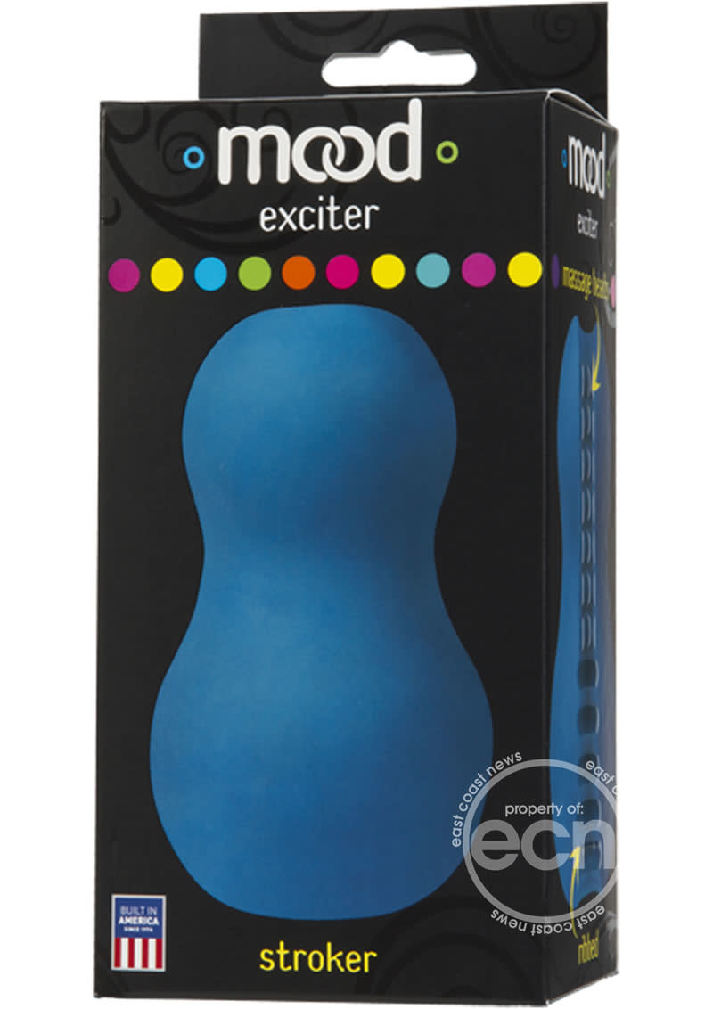 Mood Exciter Blue ULTRASKYN. Double your pleasure with the Mood Exciter. This ergonomically designed ULTRASKYN stroker features two entrances: the smaller, tighter tunnel features plush massage beads while the larger tunnel is heavily ribbed for your pleasure. This unique design makes it easy to flip it, grip it, and alter the sensation mid-session! Find the fit that is right for you! Mood stroker male masturbation device features: double ended ergonomic design. Larger entrance with heavy ribbing. Smaller entrance with massage beads. 5 inches length. Plush ULTRASKYN featuring Sil-A-Gel formula. Details: circumference 9 inches. Dimensions total length: 5 inches. Usable length: 5 inches. Diameter: 2.85 inches. Insertable Length 5 inches. Material Thermoplastic Elastomers TPE. Mood Exciter Blue from Doc Johnson Novelties Built in America Since 1976.