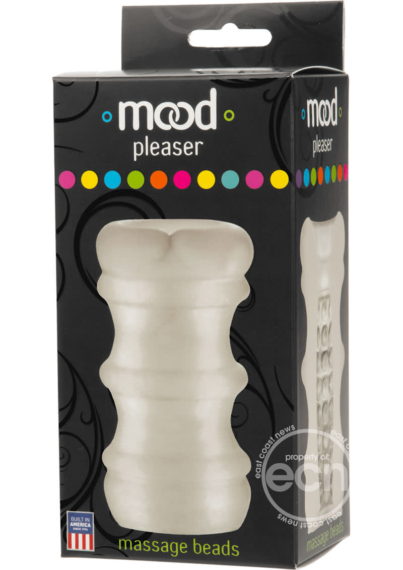 Mood Pleaser Massage Beads Frost for men. Great for a solo session, or to add something extra to playtime with a partner, the Mood Pleaser masturbators are soft, stretchy strokers with four distinct internal textures. These ultra-unique masturbators from Doc Johnson are must-haves, they perfectly combine modern aesthetics with pleasurable functionality. Finger grips on the side of the sleeve make control easy, even with lube, and while these colorful strokers share the same external shape, the internal textures vary radically. This Mood Pleaser Massage Beads Frost with plush and intense internal ribbing. The Mood Pleaser masturbators are 4.6 inches long, with a good bit of stretch to accommodate yet fit snugly. You will not believe how much the soft internal textures will enhance your playtime. Features: ULTRASKYN Stroker. Suitable for solo or partner play. Frost. Internal ULTRASKYN Massage Beads. Non-Phthalate TPE with Antibacterial Sil-A-Gel Formula. Dimensions Length 4.6 inches by Diameter 2 inches. Mood Pleaser from Doc Johnson Novelties. Proudly Made in America
