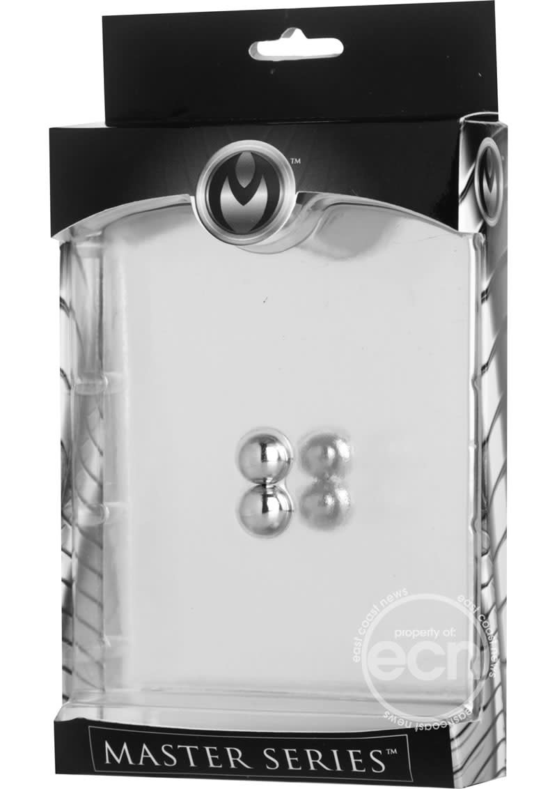 Bring them to their knees in powerfully pinched pleasure. This set of two ultra magnetized orbs may be small in size, but these intense balls pack some serious pressure. Once placed on sensitive flesh, these extremely powerful magnets begin to apply pressure. Make a game of seeing how long they can keep these pinching set of extra strong magnets in place. As your plaything relaxes, the pressure will continue to give them what they have been craving.