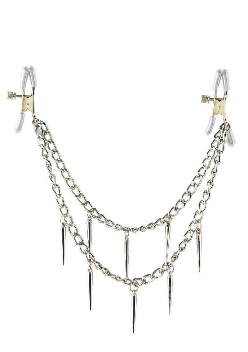Make your nipples perk with pleasure with these Rock Hard Nipple Clamps. Made with durable metal clips and covered in soft rubber liners, these clamps are perfect for beginners and fetish enthusiasts alike. The amount of pressure you apply to the nipple is adjustable by turning the screw, while the two chains give you subtle stimulation with each movement.