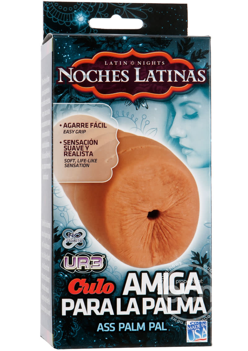 Noches Latinas ULTRASKYN Culo Amiga Para La Palma. The Noches Latinas line represents the newest in pleasure from Doc Johnson presents three beautiful caramel colored masturbators: Pussy, Ass, and Mouth. Each sold separately. These items are easy to use due to their wonderfully compact design. Material as real as it gets. All from the company that created the market for personal hand-held masturbators. Truly the ultimate fantasy come to life. Revel in the realistic feel, as this line is made of latex-free, ULTRASKYN, the most fleshy, authentic material on the market. They even warm to the touch, for a most sensational experience that consumers rave about! All packaging copy for our Noches Latinas line is written predominantly in Spanish, and marketed towards Spanish-speaking sex toy users. The packaging, and the items themselves, are both sensuous and exotic for maximum impact. Male masturbation device is made using phthalate free, non-toxic materials ULTRASKYN Thermoplastic Elastomers TPE. Ass, male mastubator, hand held strokers, sex toys for men. Latin Nights Noches Latinas exclusively by Doc Johnson. Noches Latina ULTRASKYN Amiga Para La Palma Culo from Doc Johnson Novelties The Great American Toy Company Summer Supplement 2011 page 13. Made in the USA.