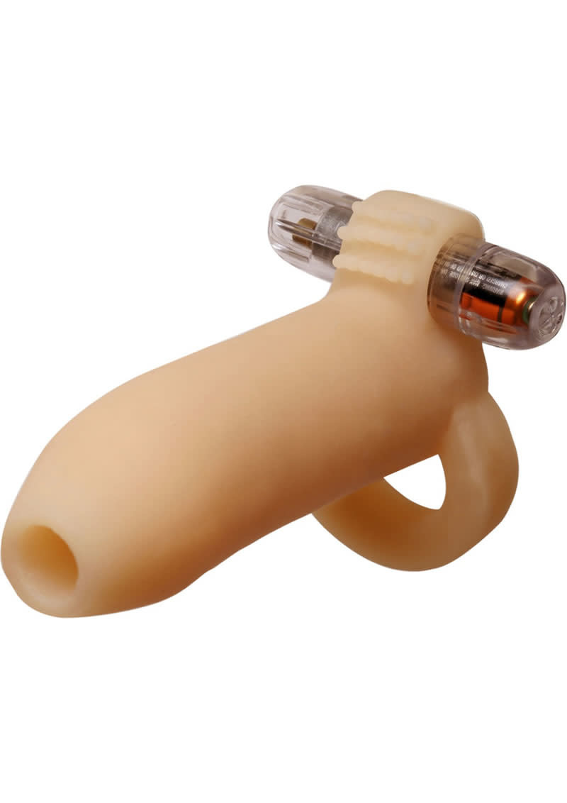 Increase your girth and intensify pleasure for you both with this Real Feel Penis Enhancer. Slide it over your erection and fulfill her every desire with your new thickness. The super-soft Real Feel material feels like a second skin-only better! Hidden on top of the sleeve is a powerful cordless micro vibe, with tiny clitoral stimulators that deliver tingling thrills for her! Enjoy FREE samples of Moist Lube & Toy Cleaner.