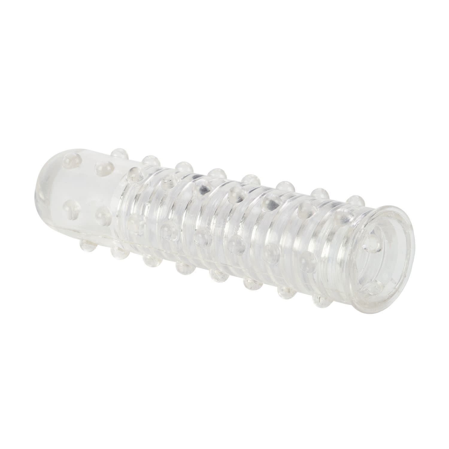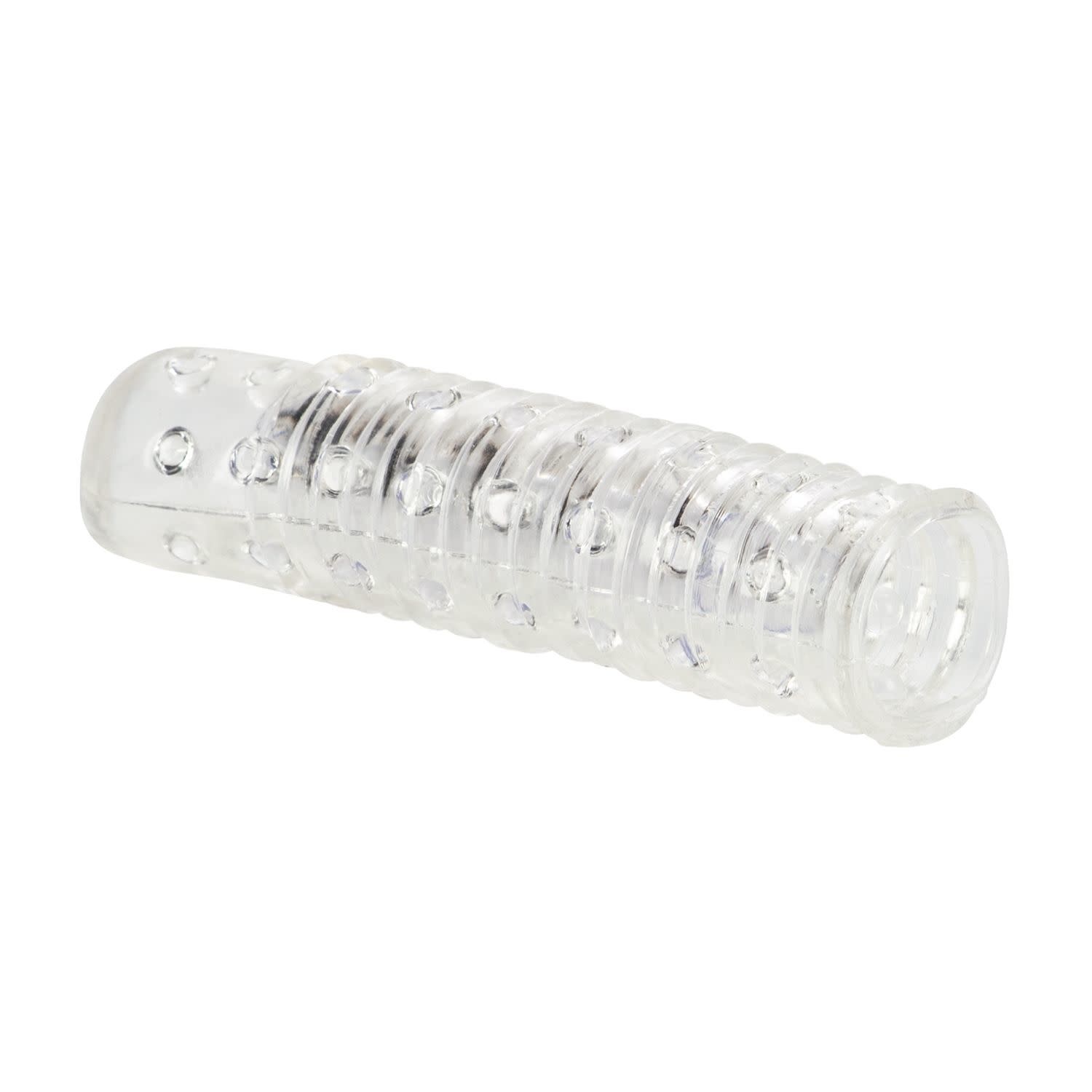 Enjoy double the orgasmic ecstasy with the versatile Reversible Sleeve. The multi-purpose reversible stimulator sleeve is designed for heightened sensual pleasure and mind-blowing orgasmic satisfaction. The textured, fully reversible sleeve is suitable for direct penis application and stimulation, and for use with your favorite vibrator. Select your preferred mode of use, and tantalizing pleasure nodule-laden side, and enjoy unlimited sensual pleasure. The Reversible Sleeve is made from soft and super stretchy unscented TPR. The transparent reversible sleeve features pleasure ridges on one side, and sensual nubs and nodules on the reverse, for ultimate stimulation ecstasy. Slide the sleeve directly over the erect penis for instant mutual arousal and heightened sensitivity. For solo exploration fun, glide the textured sleeve over your favorite vibrator and instantly elevate your erotic experience. Power up the vibe and indulge in unlimited fun. Suitable for first time and experienced users, the top quality Reversible Sleeve is a great way for spicing things up. The versatile universal sleeve makes an ideal addition to your intimate toy collection, inspiring wild secret fantasy play. To intensify the tantalizing tingles and sensations, always use a water-based lube with this toy. Before and after every use, clean the stimulator sleeve with a toy cleaner spray or warm, soapy water.