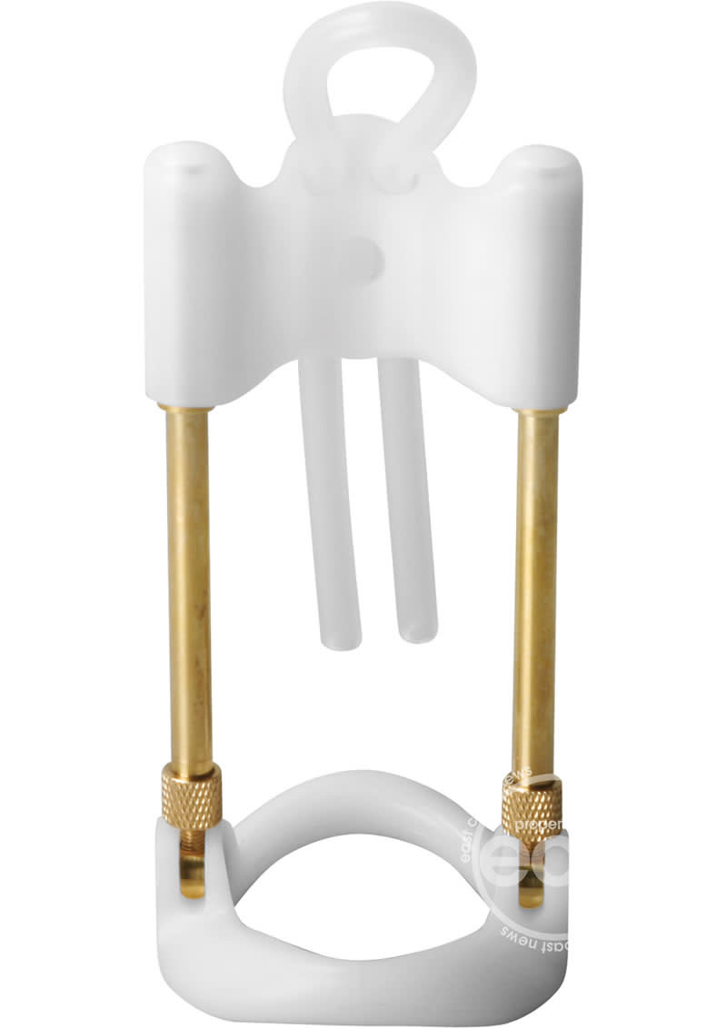 This device works on the principle of traction. Its design is comfortable, discreet, and functional. The silicone band keeps the device securely on the penis so you can achieve the desired results. It's comfortable, it conceals well, won't leave marks, and lasts as long as you need to wear it to gain the desired results. This is an affordable way to increase size and girth or to correct any penis curvature. A comfortable contoured plastic ring goes around the base of the penis then a plastic and silicone holder is secured around the head of the penis. Two adjustable brass metal bars are attached between each allowing the wearer to extend the length of each rod to apply tension. The principle is the same as has been used to lengthen other limbs. It will fit every user and every penis size. It is easy to apply, painless, and cannot be seen beneath loose fitting clothing. This device increases both length and girth and is capable of enlarging your penis without surgery. It can be used any time of day for various time intervals. The total amount of hours worn, combined with the traction amount, determines the result. Wearing the device for 2 hours a day for 12 months, will give the same result as wearing it 12 hours a day for 2 months. Long uninterrupted usage is not required so you can take a break for a period of time without losing any size already gained. It can be worn at night but may come off if you are a restless sleeper. Use has no side effects and no influence on urination, erection or fertility. The enlargement is permanent and no assistance from your Doctor is needed. "I love this product. Since I've started using it, it has increased my length and girth which has brought a lot of pleasure to my partner. Not only that but it has given me more confidence. This item did exactly what they said it would do and delivered results!" "This product worked great! After following the instructions on their site I seen slight growth in girth and length....let's just say the girlfriend is more than pleased and so am I :-)"